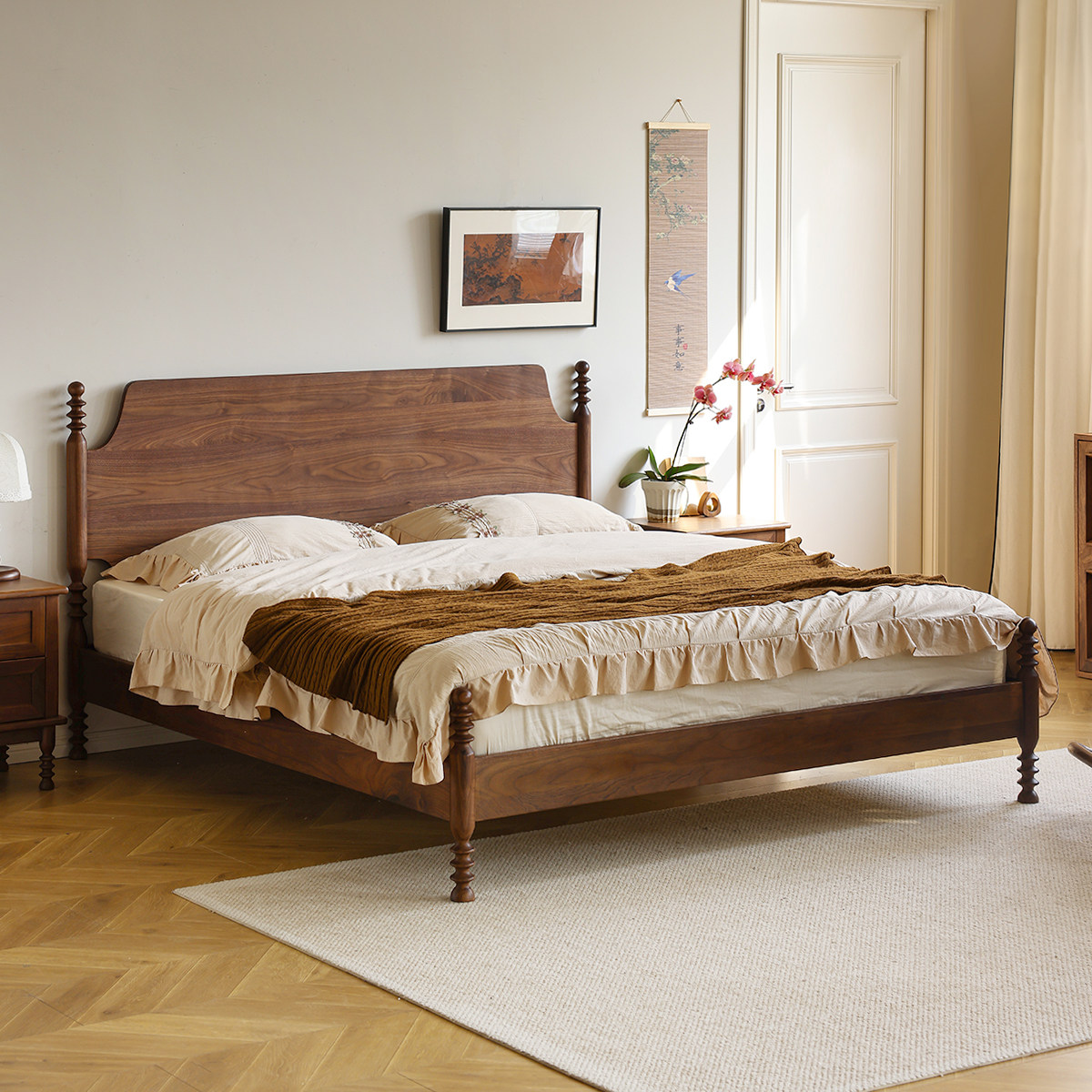北美黑胡桃木纯实木1.5米1.8米双人床主卧美式复古中古风婚床大床