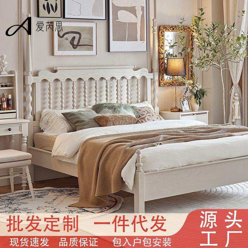 纯木优家丨法式复古实木床卧室家用双人床美式简约现代大床中古床