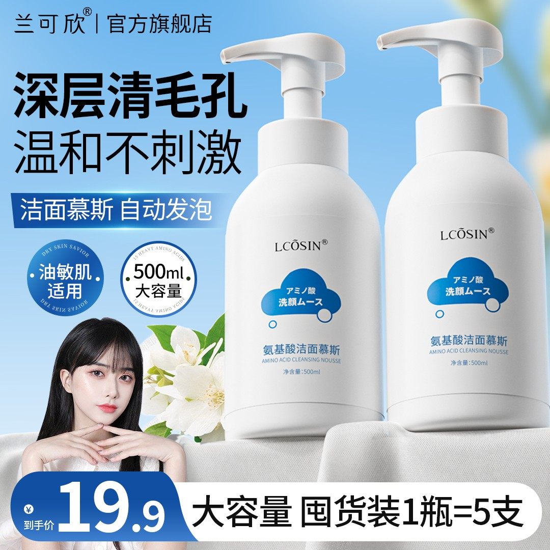 兰可欣氨基酸洁面慕斯泡沫温和深层清洁毛孔控油祛痘洁面乳洗面奶
