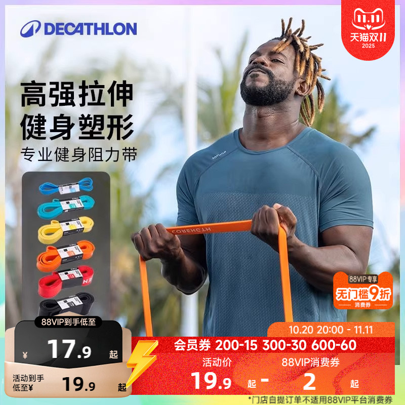 迪卡侬弹力带健身男拉力绳拉力带阻力带训练引体向上弹力绳女ENY1