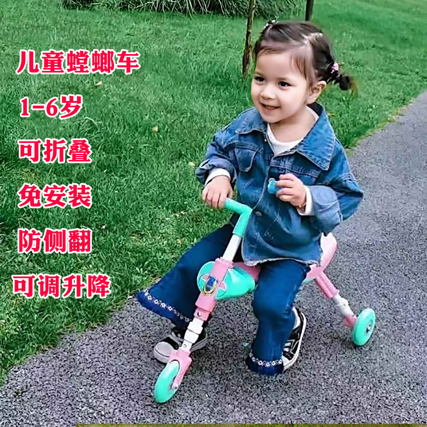 折叠儿童螳螂车大小号宝宝滑行学步车1-3-6岁平衡三轮溜溜滑滑车