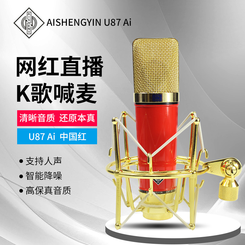 艾声U87Ai中国红网红人声录音直播K歌录音大振膜麦克风声卡套装