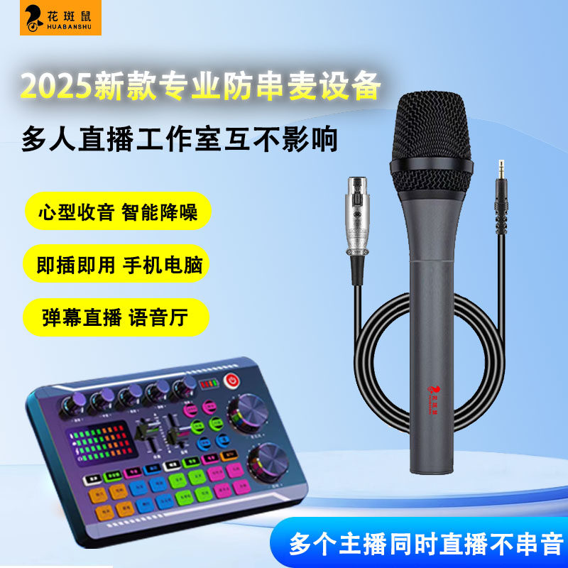 ##花斑鼠直播防串麦克风声卡收音多人工作室专用弹幕直播语音厅