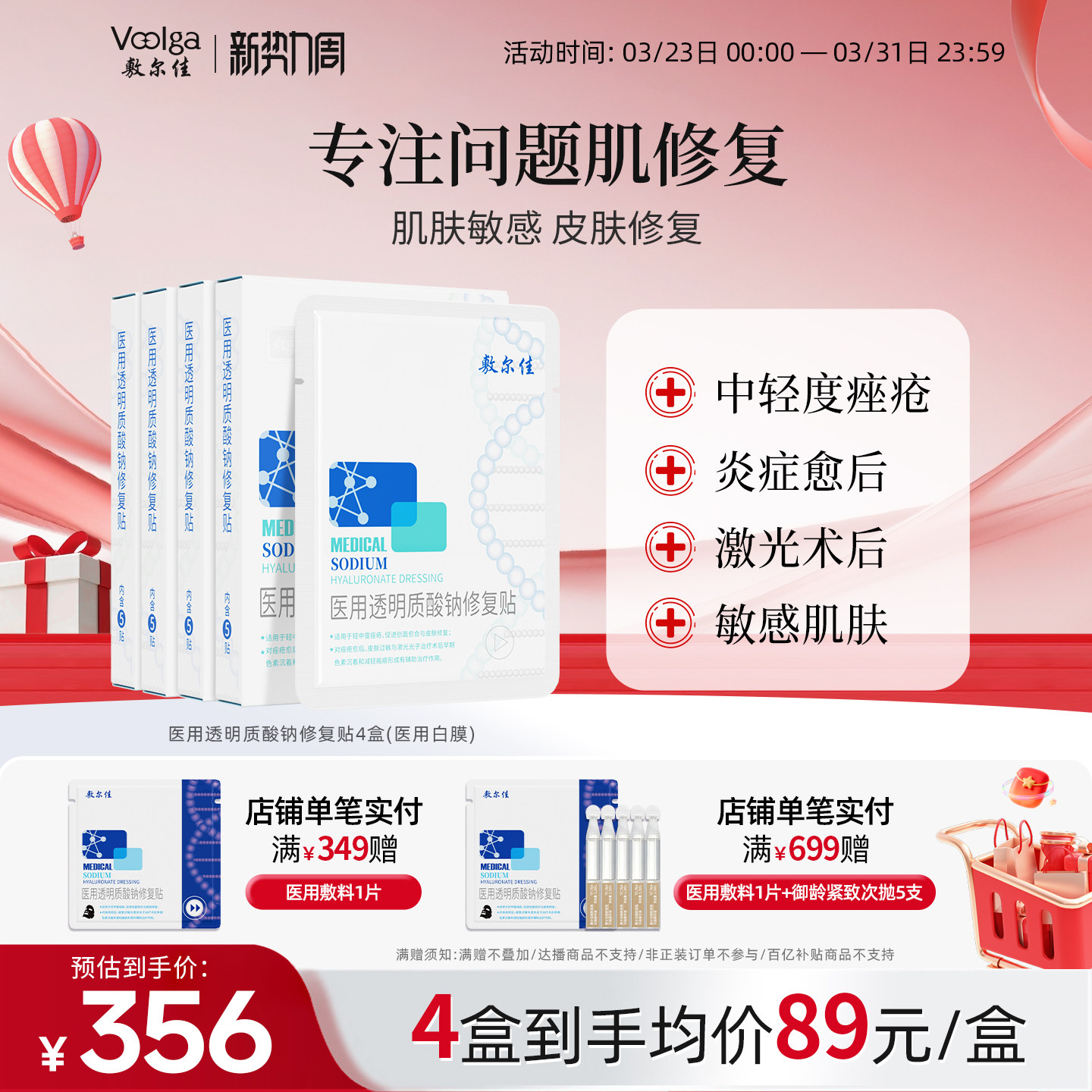 敷尔佳白膜医用敷料术后皮肤修复4盒透明质酸钠修护敷贴无菌伤口