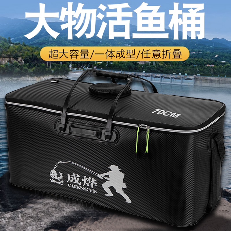 大物装活鱼桶折叠鱼桶大容量一体成型可提可背加厚eva多功能钓箱