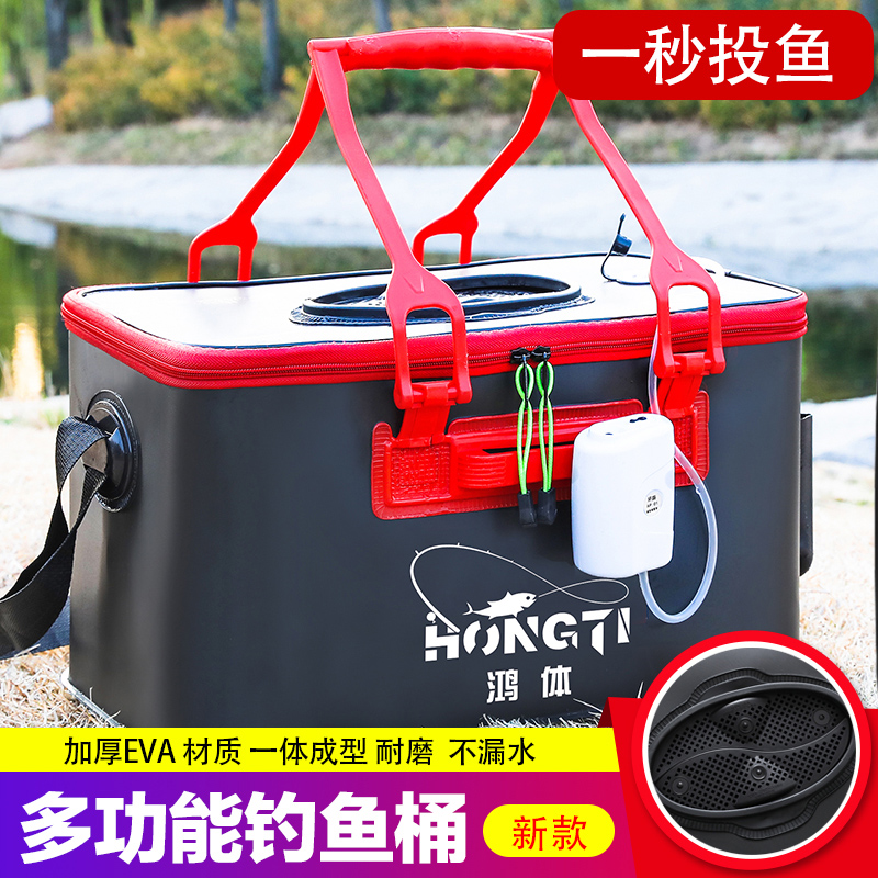 装鱼桶钓鱼桶鱼护桶活鱼桶增氧泵手提桶加厚可折叠多功能钓箱渔具