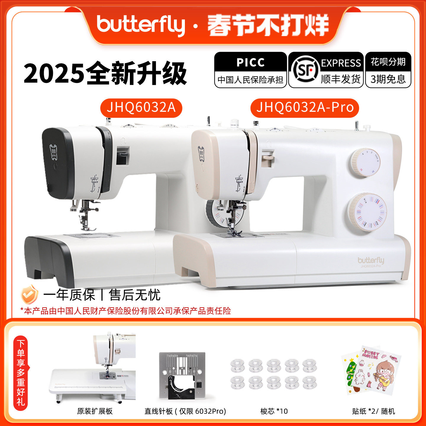 【官方旗舰】蝴蝶牌6032家用电动多功能台式缝纫机锁眼锁边新款