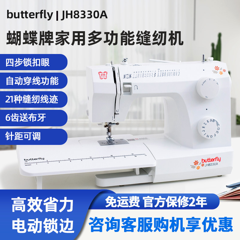 蝴蝶牌缝纫机家用电动多功能台式可锁边吃厚JH8230A/8330A/8530A