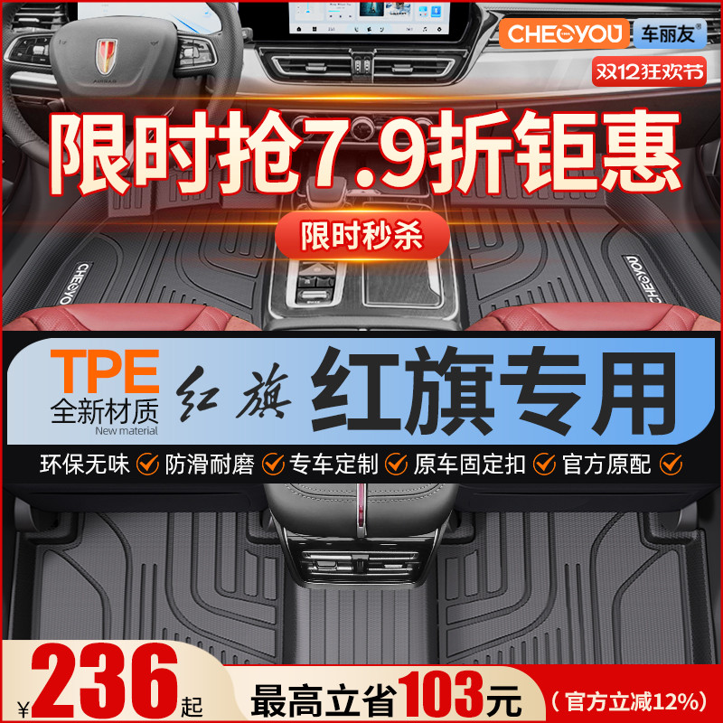 车丽友适用于红旗H5 HS5 EQM5 H9 HS3 H6 全包围TPE脚垫25款汽车