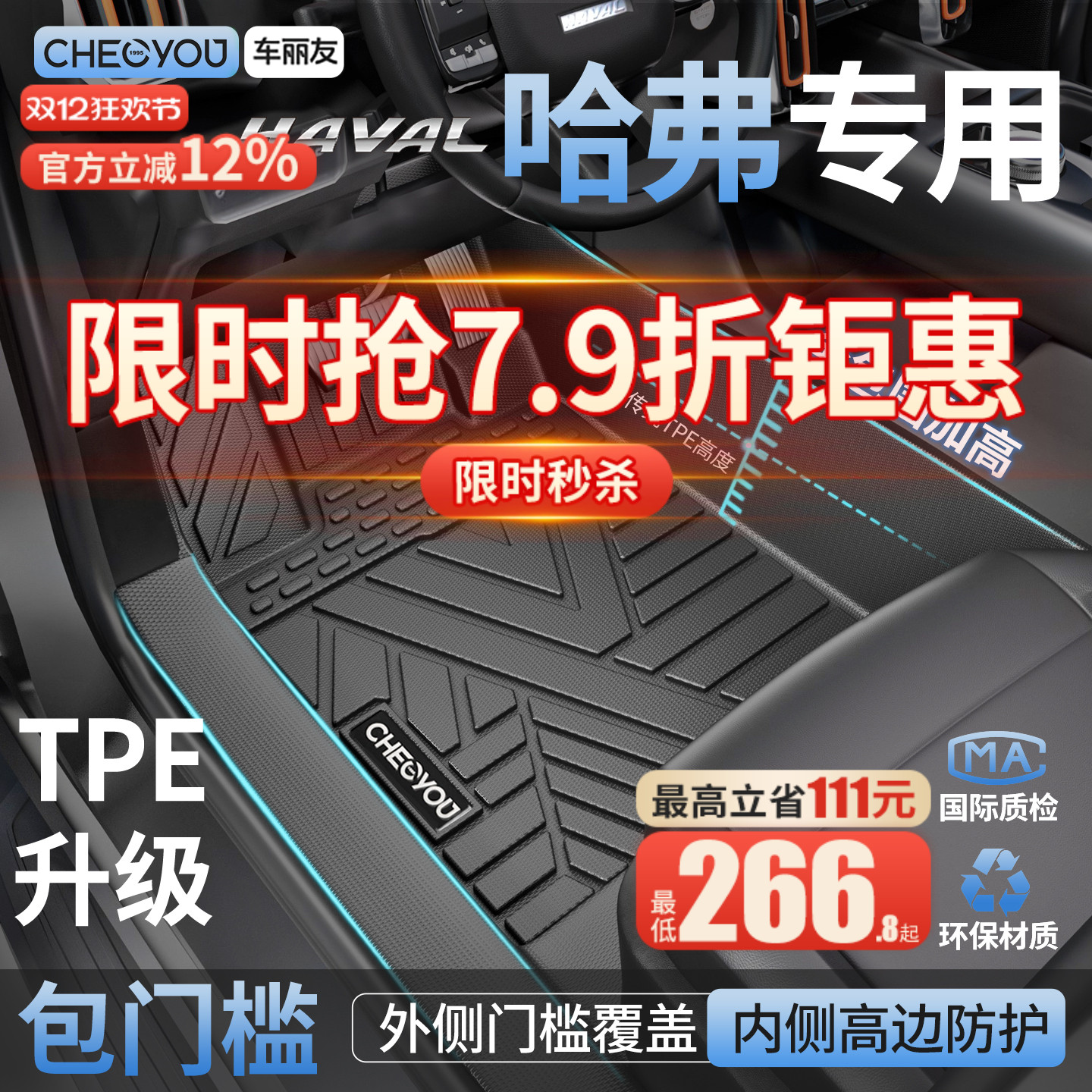 适用于第一代第二代哈弗H6脚垫TPE包门槛大包围包门边专用地毯