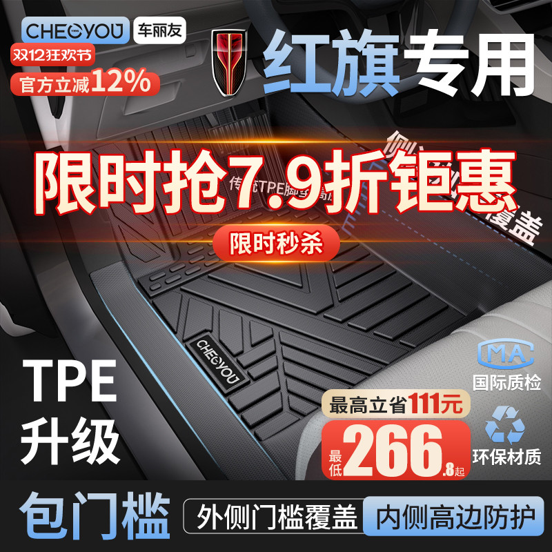 3W全TPE脚垫青春版适用于红旗E-QM5 H5 HS5 H6专用脚垫车后备箱垫