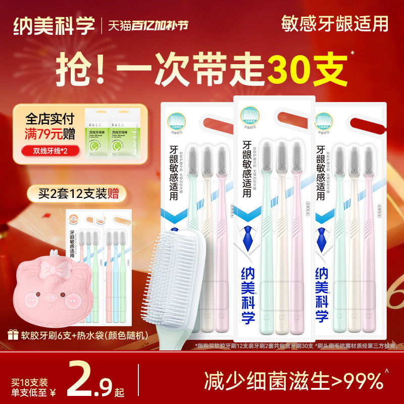 纳美纳米牙刷软毛硅胶成人正品家庭组合装牙缝刷小头情侣男女专用