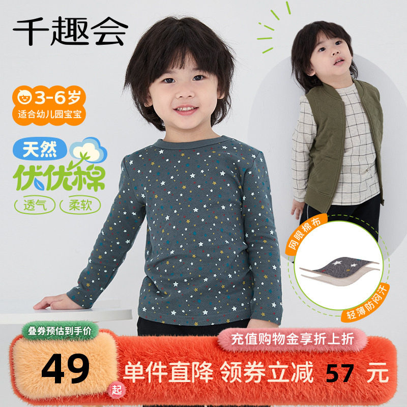 千趣会童装25年秋季儿童长袖T恤男女童纯棉幼儿园宝宝条纹打底衫