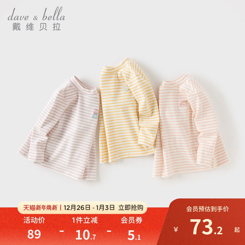 戴维贝拉儿童长袖T恤2025女童冬新款条纹打底衫宝宝弹力上衣秋装