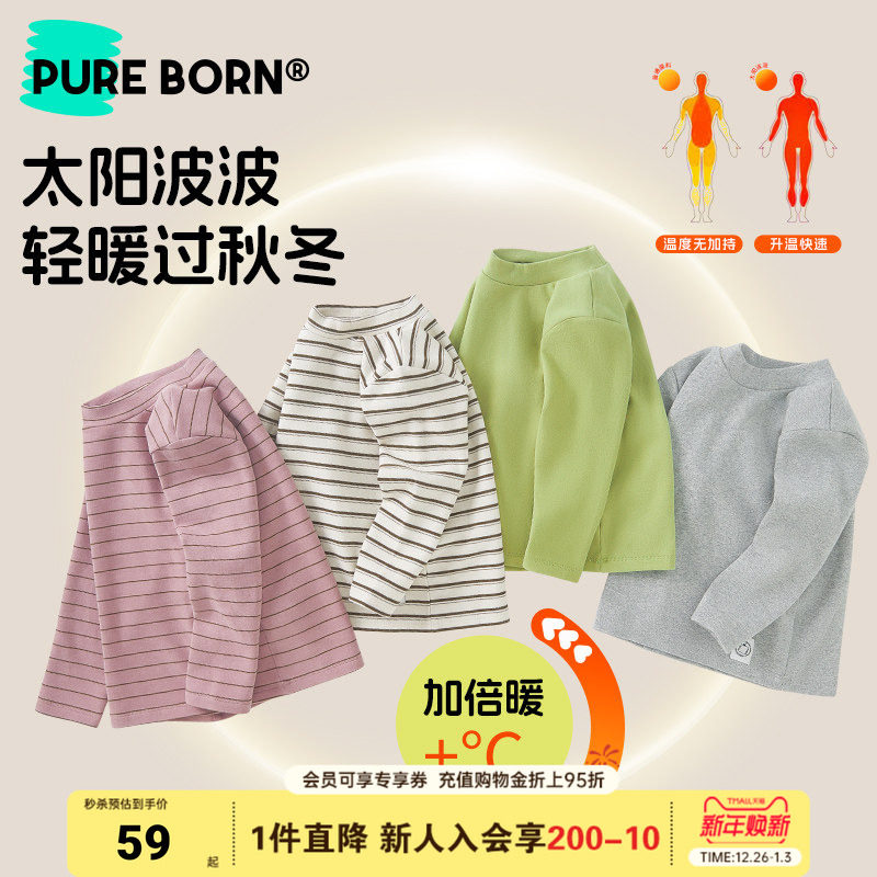 【波波绒】papa爬爬冬季儿童打底衫内搭高领男女宝宝条纹长袖发热