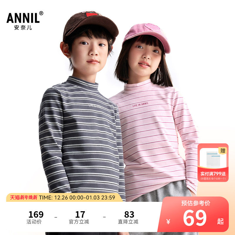 【中领条纹T】安奈儿童装男童女童长袖T恤2025秋新款弹力打底衫