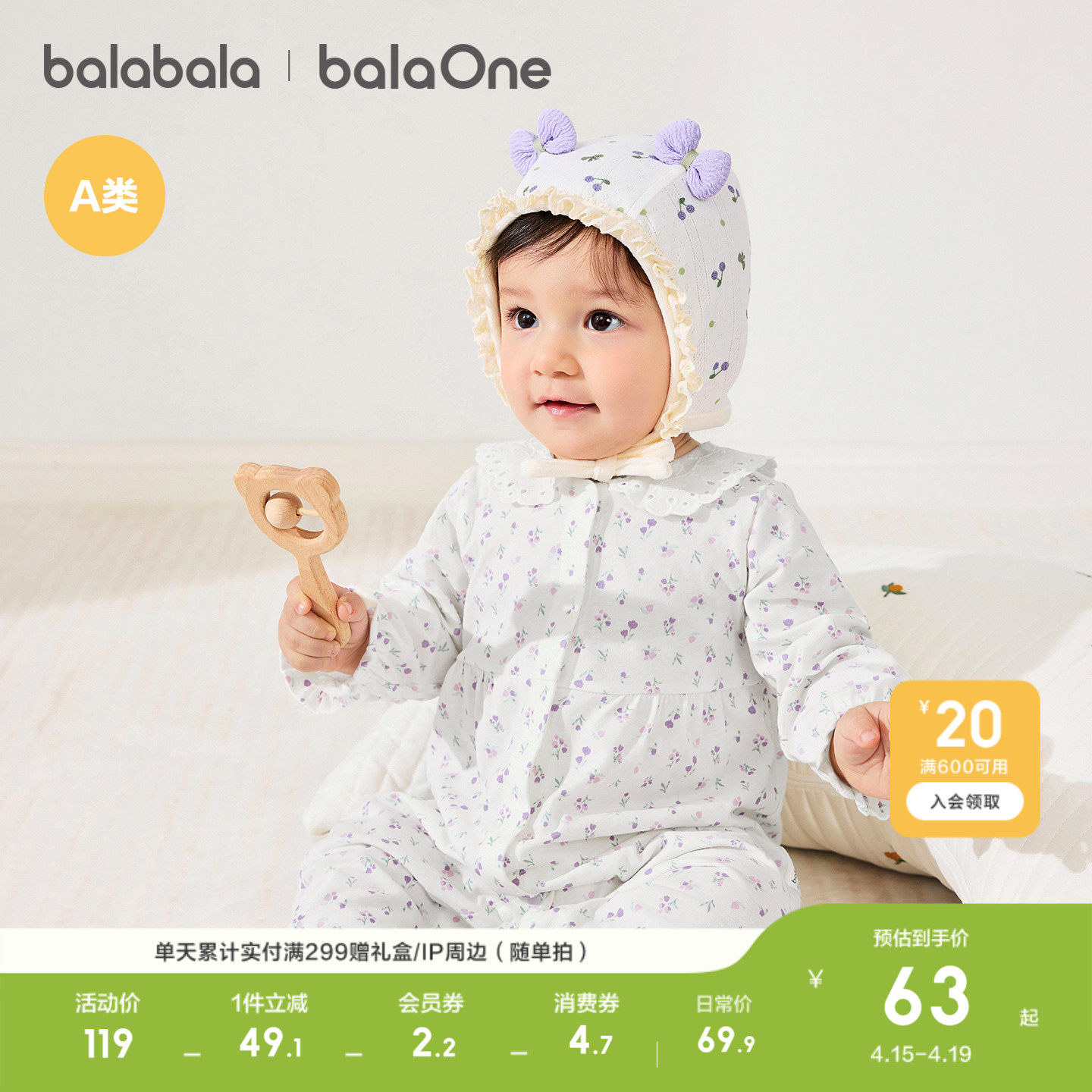 巴拉巴拉童装婴儿羽绒服宝宝外出连体衣新生儿哈衣爬服儿童冬装萌