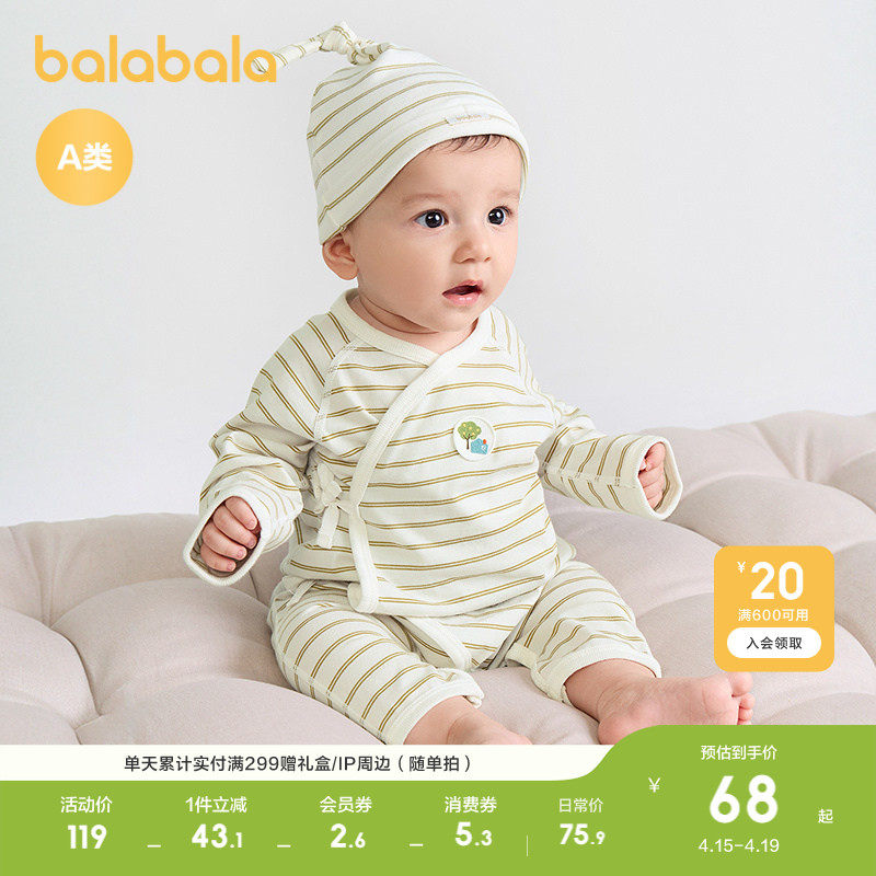 巴拉巴拉婴儿连体衣宝宝纯棉哈衣儿童新生儿礼盒爬服2026春装新款