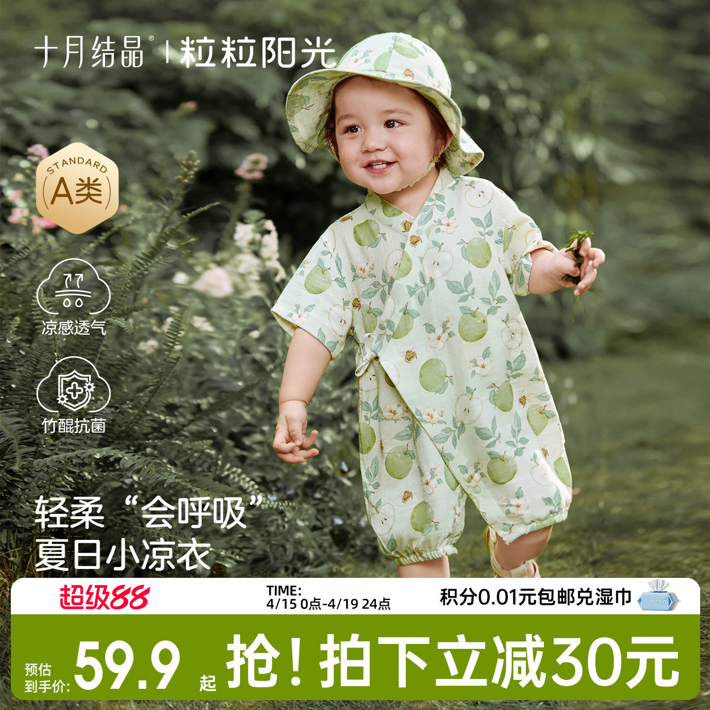 十月结晶粒粒阳光宝宝衣服春夏竹棉哈衣外出婴儿衣服2026新款童装