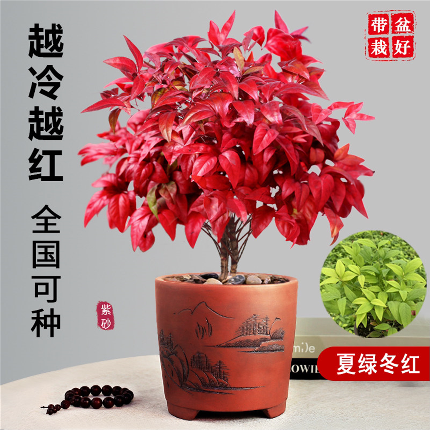火焰南天竹盆景绿植盆栽中式客厅禅意观叶室内桌面摆件植物好养活