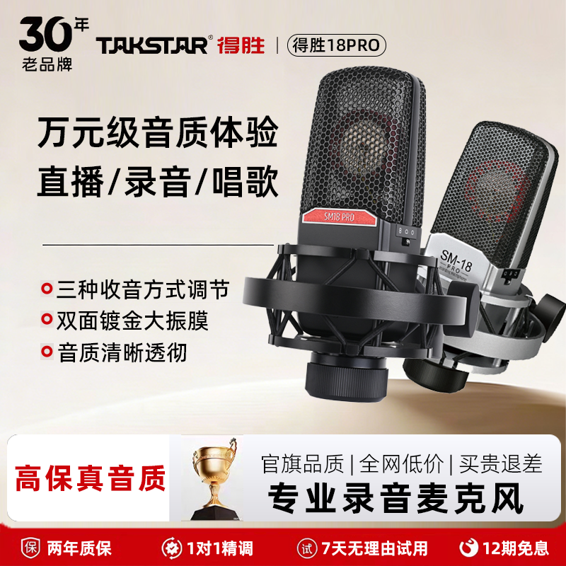 得胜sm18pro专业唱歌话筒麦克风K歌主播录音电容麦专业声卡套餐