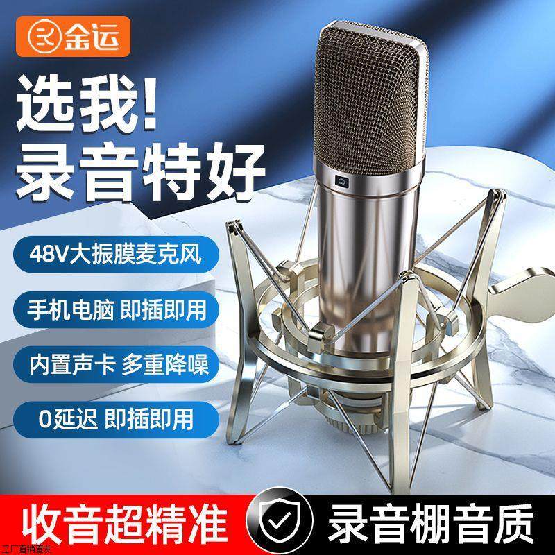 专业48V大振膜电容动圈麦克风网红直播专业声卡专用唱歌幻象麦