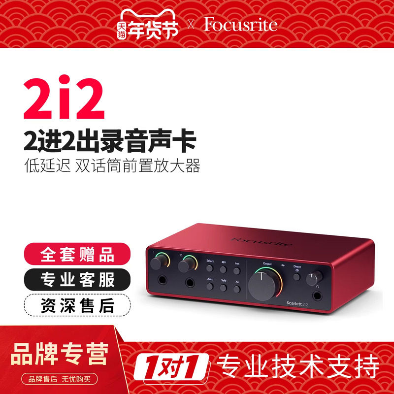 福克斯特 Focusrite 2i2 四代配音录音编曲吉他USB专业声卡设备