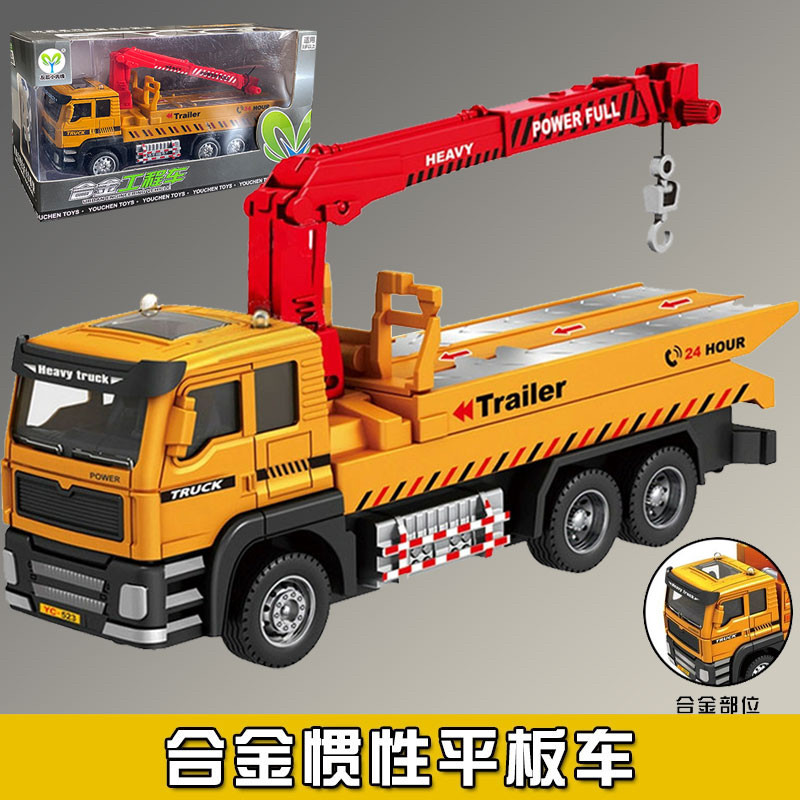 礼盒 合金平板拖车救援车儿童玩具工程车模型汽车男孩惯性起吊车