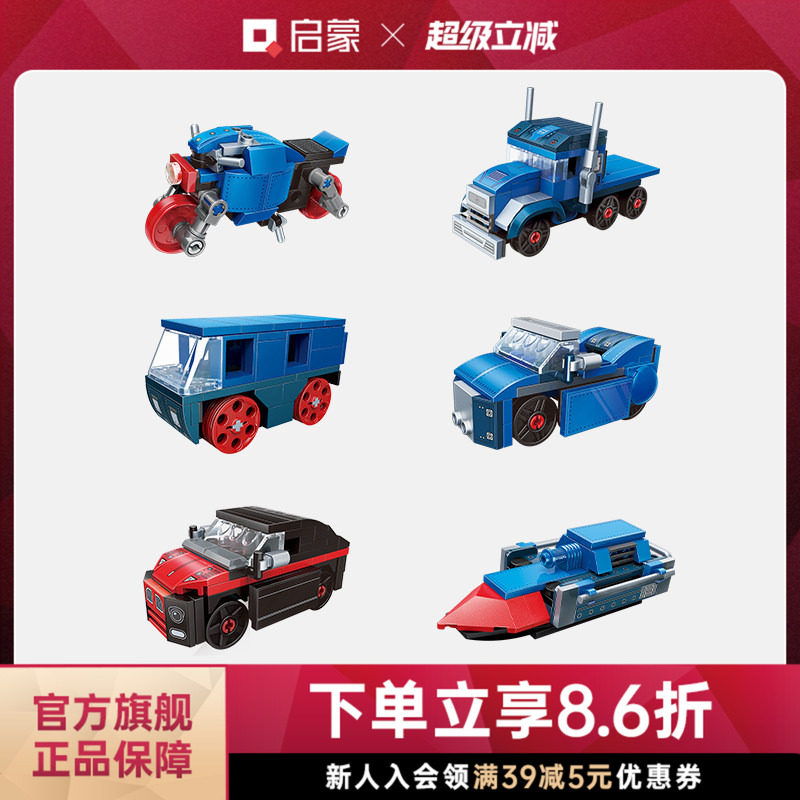 启蒙积木八合一复古蒸汽火车益智拼装男孩儿童玩具工程车模型礼物