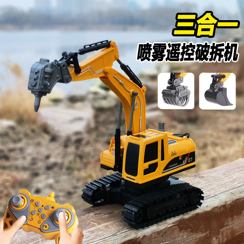 儿童遥控钻地机仿真喷雾电动破拆机玩具工程车模型男孩子生日礼物