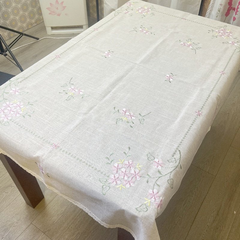 外贸栀子花原白色竹节布绣花桌布150x220长方形餐桌布茶几布田园