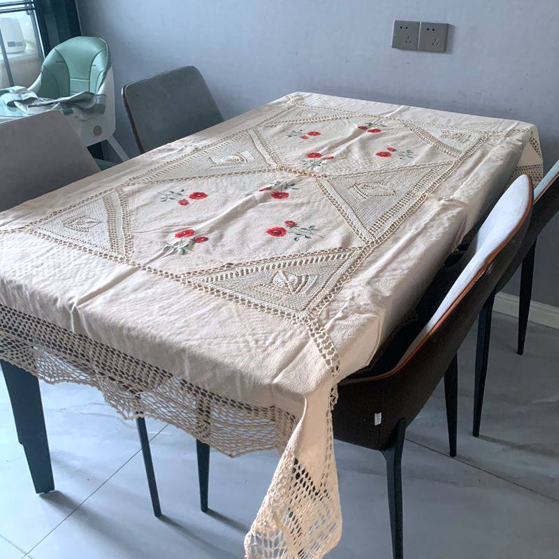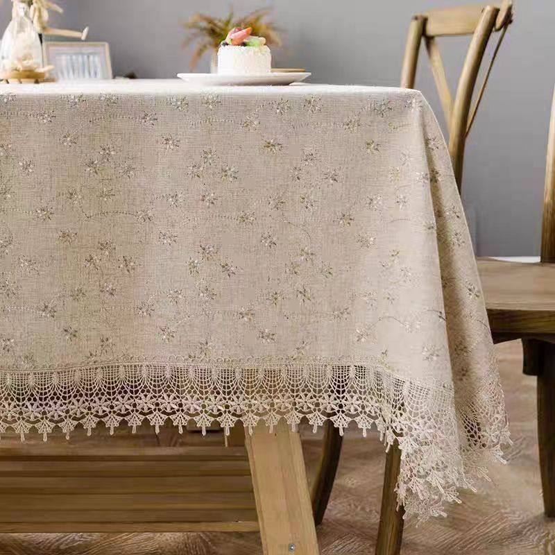 乡村质朴素色亚麻绣花桌布镂空水溶花边田园风棉盖巾植物气质复古