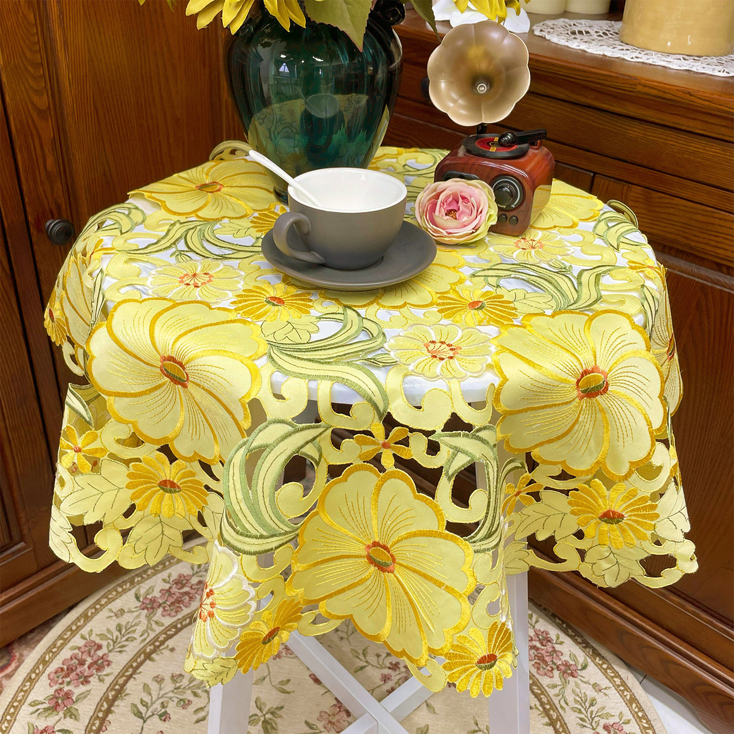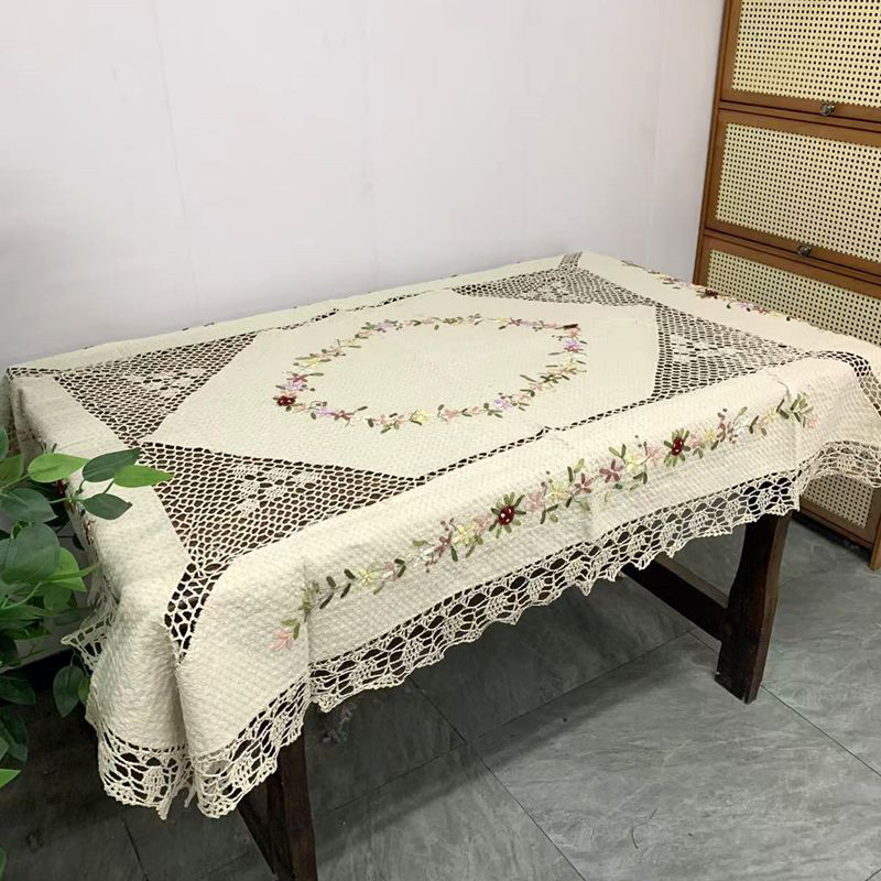 绣花桌布外贸刺绣餐桌布艺现代田园欧式茶几巾盖巾镂空餐桌旗桌垫