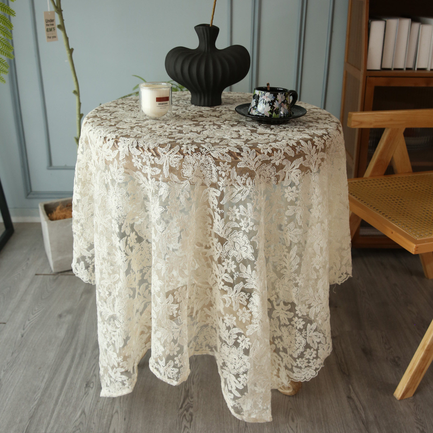 法式复古米色蕾丝绣花桌布轻奢长方形餐桌布氛围感圆桌甜品台盖布