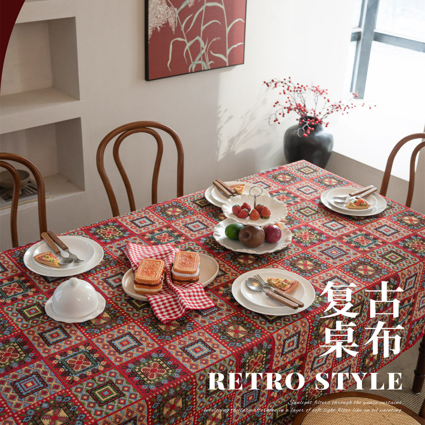 新年红色桌布高级轻奢装饰餐桌布布艺棉麻长方形家用绣花桌布盖布