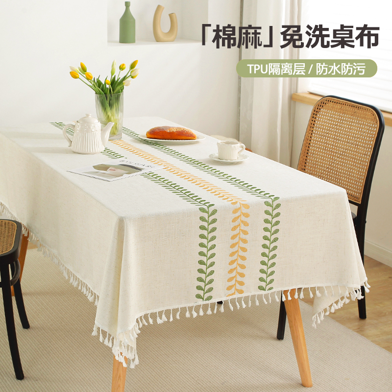 棉麻防水布艺桌布小清新餐桌布高级绣花茶几布长方形流苏盖布台布
