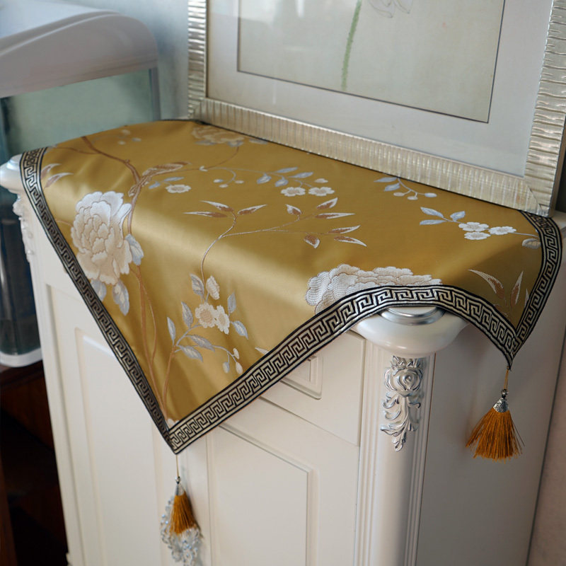新中式电视柜巾绣花桌布盖巾布艺家用餐桌垫茶几台布长方形防尘罩