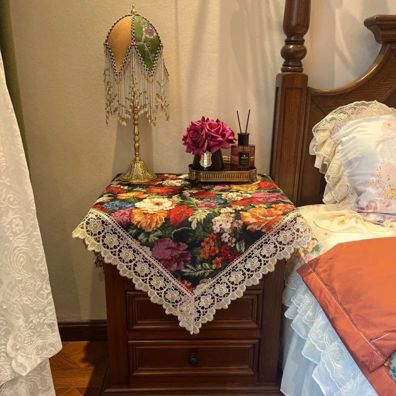 复古法式蕾丝桌垫ins绣花蕾丝桌布田园欧式床头柜装饰玫瑰花餐垫