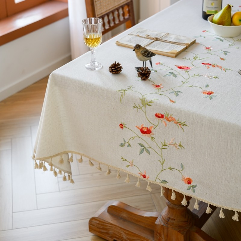 家用布艺餐桌布台布布艺田园棉麻绣花茶几桌布中式轻奢长方形盖巾