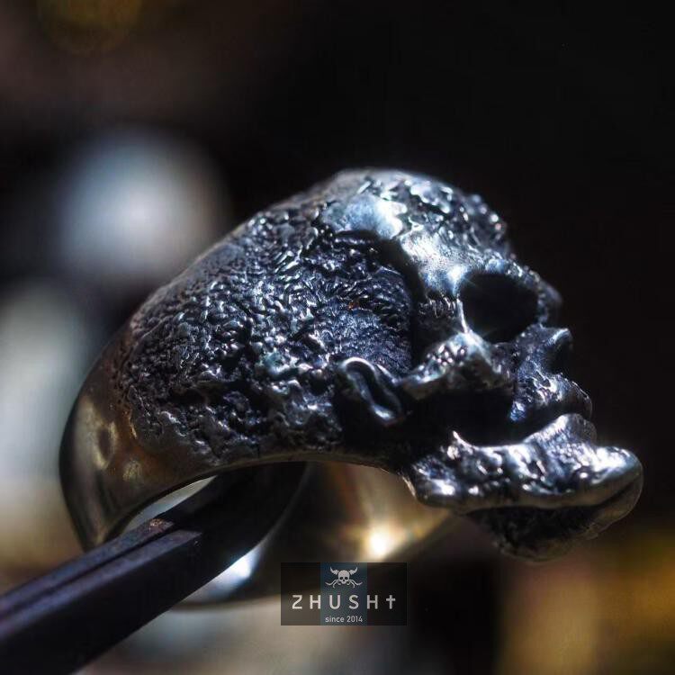 主师原创设计六字真言款尼泊尔永恒僧纯银手工制作暗黑系骷髅戒指