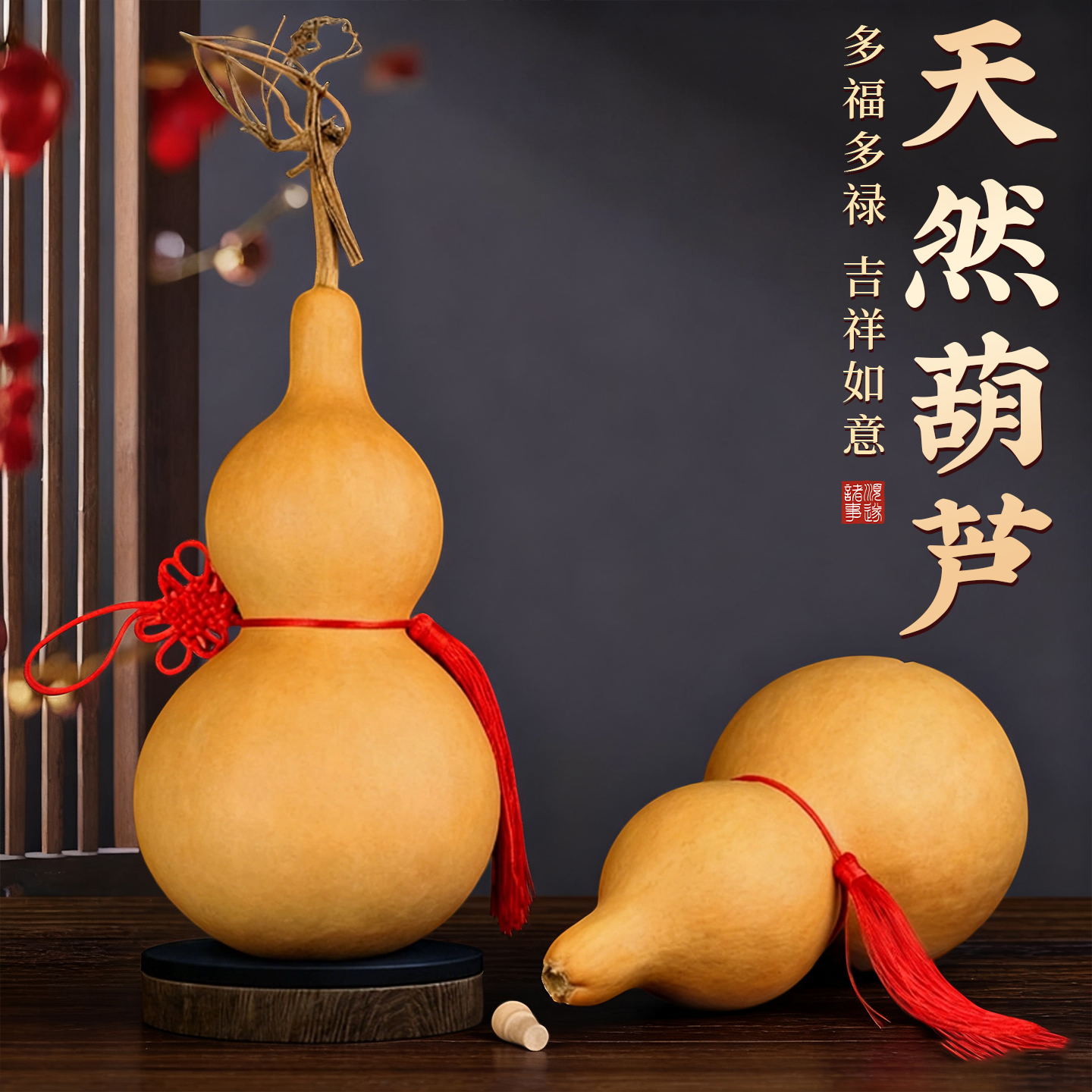 开口天然葫芦摆件带龙头木塞葫芦挂件真葫芦门对门吉祥结家居客厅