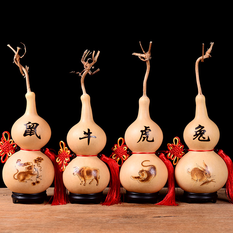 手工烙画十二生肖天然葫芦摆件烫画鼠牛虎马龙猪卧室书房葫芦挂件
