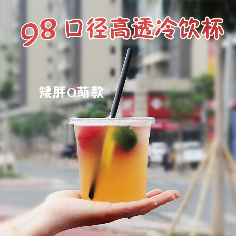 98口径一次性塑料透明冷饮杯加厚奶茶杯咖啡杯带盖柠檬茶商用pet