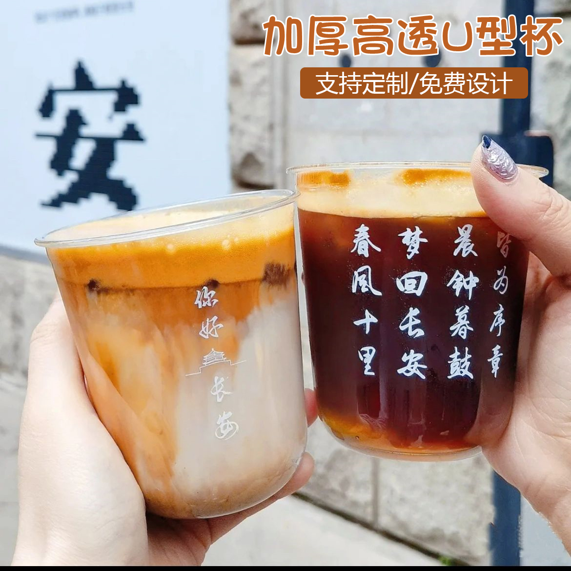 一次性U型加厚高透明冷饮奶茶杯咖啡杯带盖PET波波杯外卖打包商用