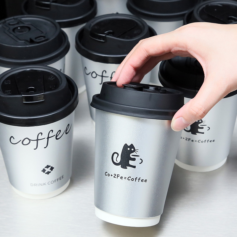 一次性咖啡杯全黑双层中空杯热饮奶茶杯咖啡杯白色牛皮双层纸杯批