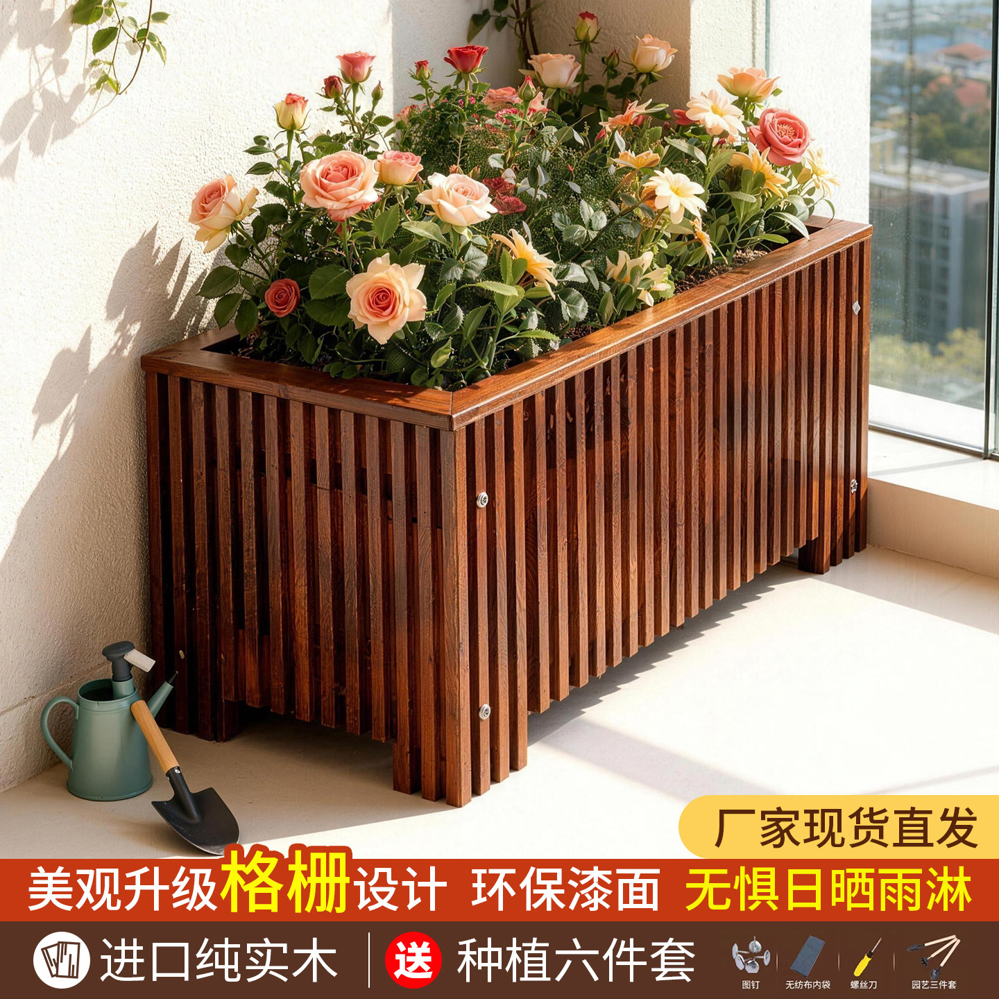 防腐木花箱户外长方形阳台花盆种植箱花槽实木栅栏庭院种菜盆专用