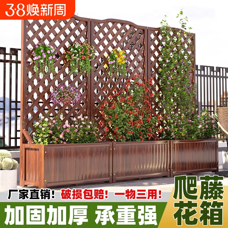 防腐木花箱围栏隔断花架一体靠墙户外庭院栅栏花园阳台花盆爬藤架