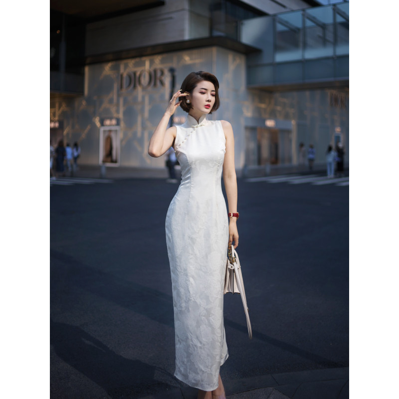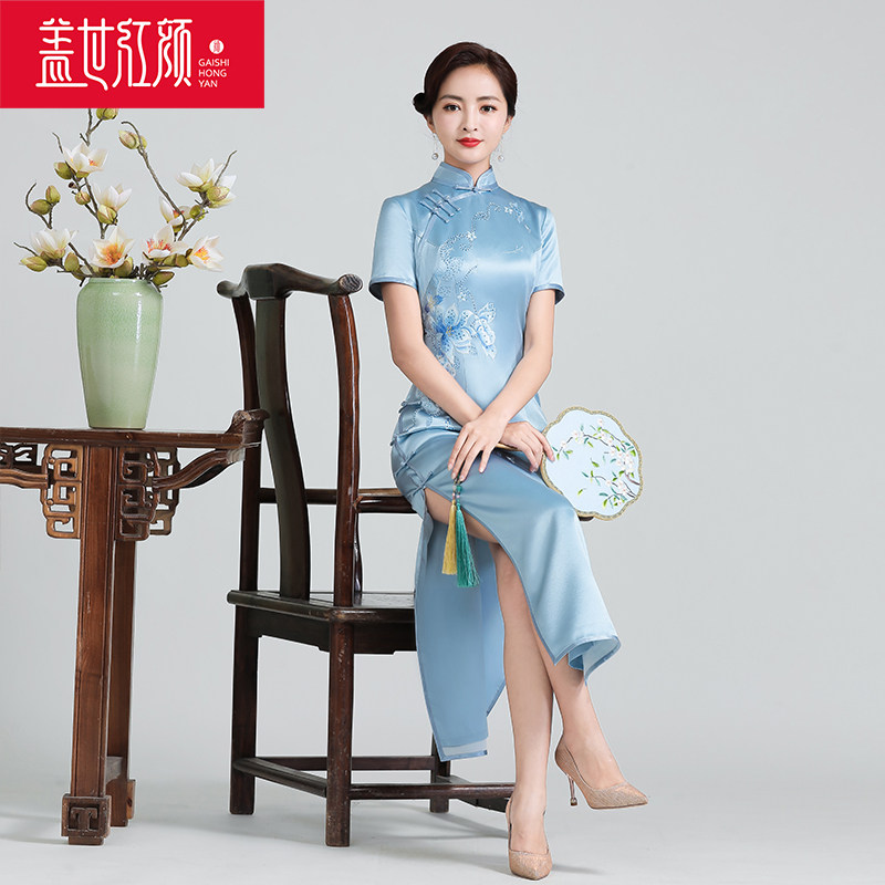 中长款复古演出服修身显瘦走秀连衣裙日常丝绸优雅气改良旗袍精致