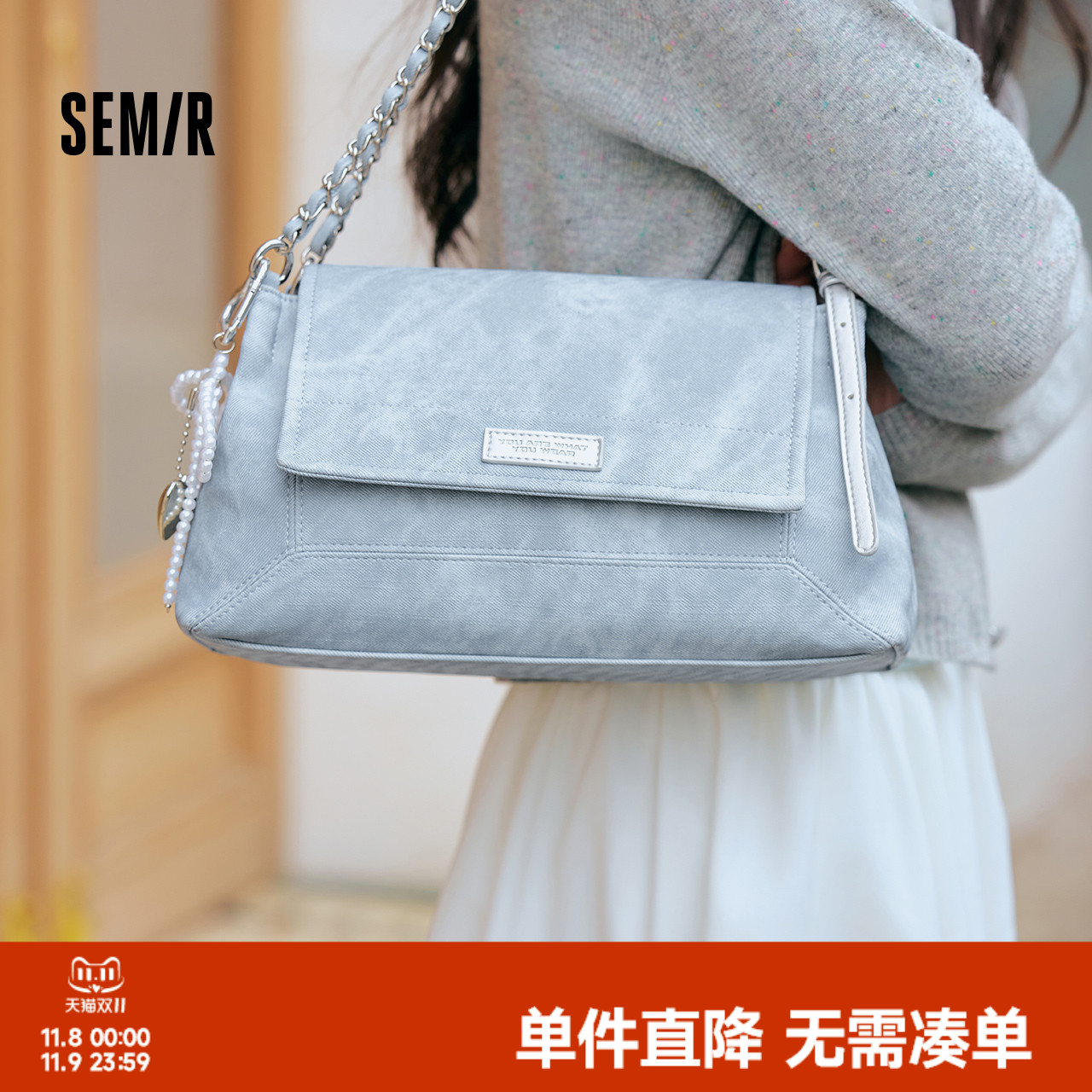 森马包包女单肩包2025新款复古擦色仿牛仔链条包时髦信封包手提包