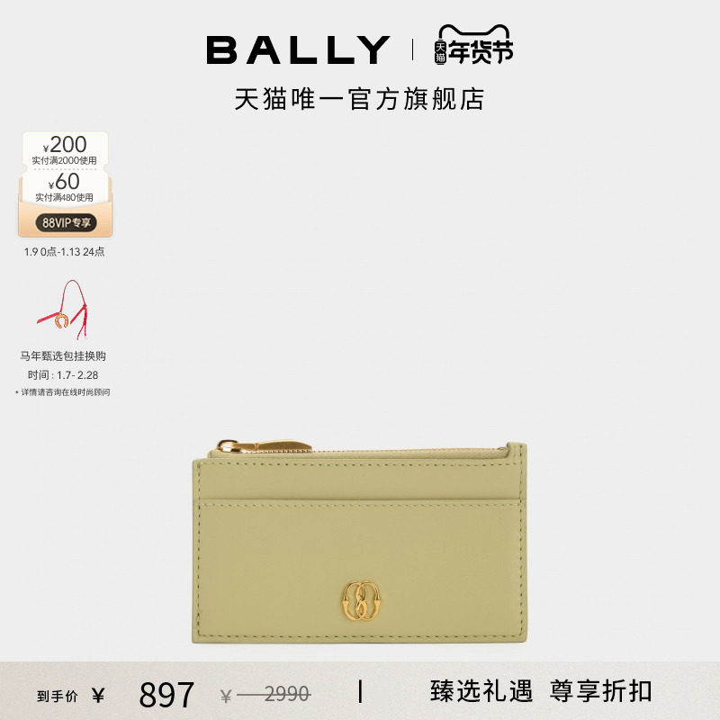 【尊享折扣】BALLY巴利EMBLEM绿色牛皮革女士卡包6309173